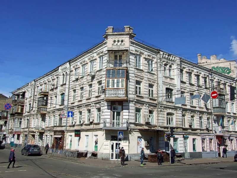 2021 р. Загальний вигляд з півдняРозмір зображення: 800:600 піксел Ліворуч – вул. Межигірська, праворуч – вул. Нижній Вал. Фото М. І. Жарких, 23 березня 2021 р. |