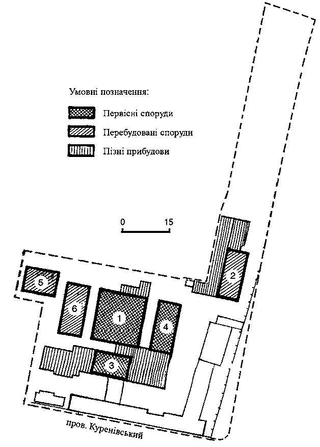 До забудови 1930-х рр. належить двоповерховий адміністративно-виробничий корпус (тепер його орендує СП «Риф-1»).
