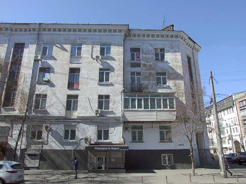 2021 р. Права частина фасаду по вул. ОболонськійРозмір зображення: 800:600 піксел Фото М. І. Жарких, 26 березня 2021 р. |