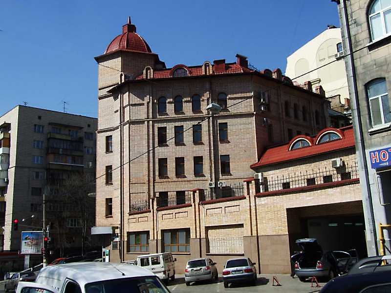 Банк “Факторіал” (№ 76) Розмір зображення: 800:600 піксел Вкладені елементи 2009 р. Загальний вигляд з боку вул. О.Гончара 2008 р. Загальний вигляд (зліва – вул. гоголівська, справа – вул. О.Гончара) 2008 р. Фасад по вул. Гоголівській