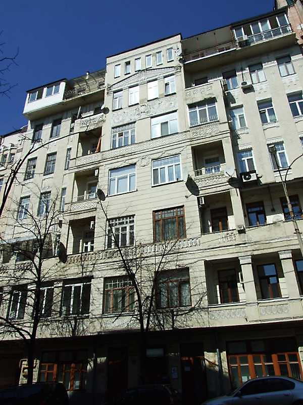 2009 р. Головний фасад (30а) Розмір зображення: 600:800 піксел 8 квітня 2009 р. Фото М.І.Жарких. Вкладені елементи Фрагмент 6-7-го поверхів (+) Балкон 3-го поверху Рельєфна вставка Рельєфна вставка