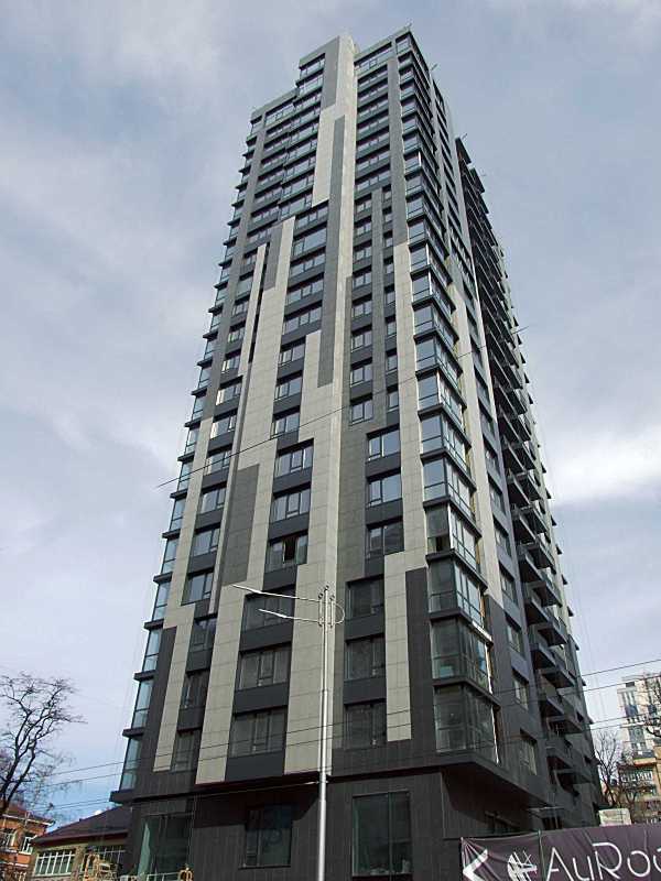 Житловий будинок (№ 20 / Жилянська, 82)Розмір зображення: 600:800 піксел Житловий комплекс «AuRoom». Ліворуч – вул. Жилянська, праворуч – вул. Паньківська. Вигляд з півдня. Фото М. І. Жарких, 13 березня 2020 р. |