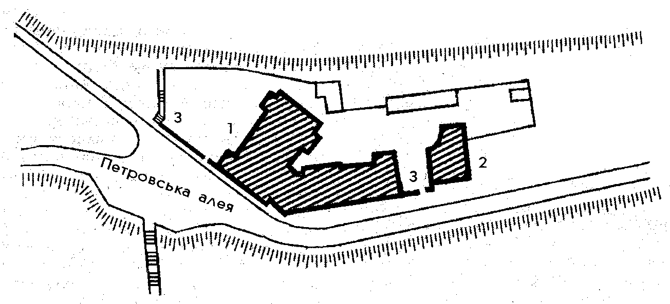 Генеральний планРозмір зображення: 1304:593 піксел Джерело: Звід пам’яток історії і культури України. – К.: 1999 р., т. 1 (Київ), с. 518. |