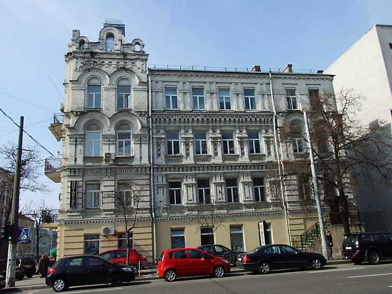 2009 р. Фасад по вул. Саксаганського Розмір зображення: 800:600 піксел 7 квітня 2009 р. Фото М.І.Жарких. Вкладені елементи Наріжна частина (+)
