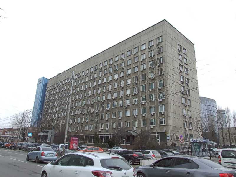 Адміністративний будинок (№ 27)Розмір зображення: 800:600 піксел Ліворуч – вул. Жилянська, праворуч – вул. Петлюри. Фото М. І. Жарких, 31 березня 2021 р. |