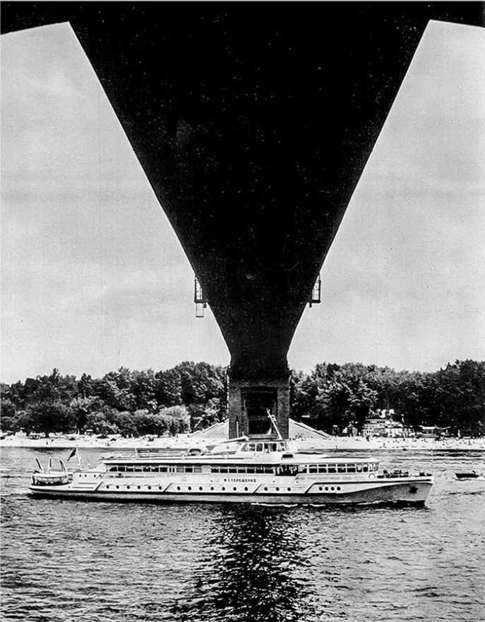 1975 р. Теплохід проходить під мостом
