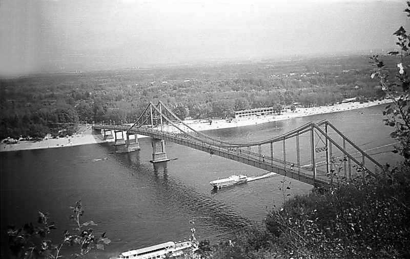 1975 р. Вид на Дніпро і пішохідний міст з північного заходу