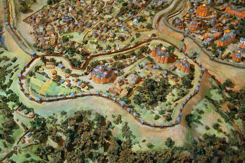 “Аерофотознімок” з північного сходуРозмір зображення: 800:533 піксел В центрі – церква св.Дмитра, праворуч від неі – Михайлівський Золотоверхий собор та церква св.Петра. В правому верхньому куті – частина города Володимира. |