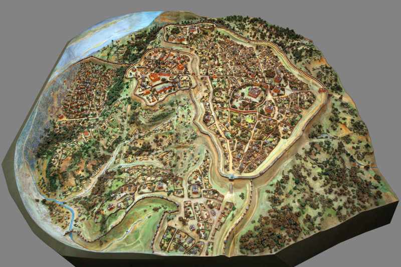 “Аерофотознімок” із заходуРозмір зображення: 800:533 піксел Найближче до глядача – Копирів кінець, вище від нього – город ярослава. Лівіше – город Володимира, ще лівіше – Поділ. Фрагмент Дніпра – у лівому верхньому куті кадра. |