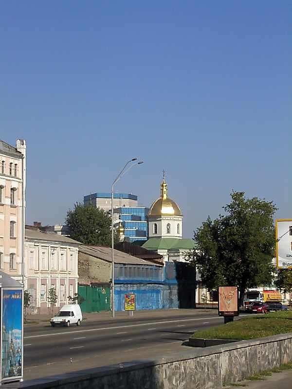2005 р. Церква св.Іллі на тлі офісного центру “Поділ-Плаза”Розмір зображення: 600:800 піксел Вигляд з південного сходу. 31 серпня 2005 р. Фото М.І.Жарких. |