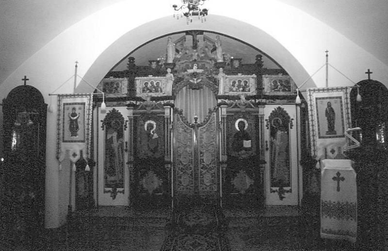 [2003 р.] Інтер’єр з видом на вівтарРозмір зображення: 800:519 піксел Джерело: Звід пам’яток історії і культури України. – К.: 2003 р., т. 2 (Київ), № 262-3. |