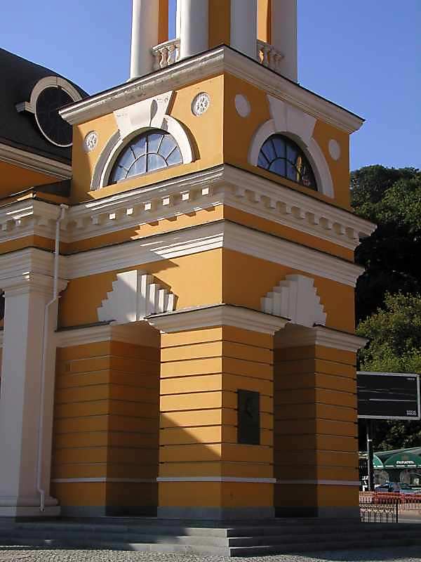 Нижні яруси дзвіниці Розмір зображення: 600:800 піксел 31 серпня 2005 р. Фото М.І.Жарких. Вкладені елементи Меморіальна дошка панахиді по Т.Г.Шевченку