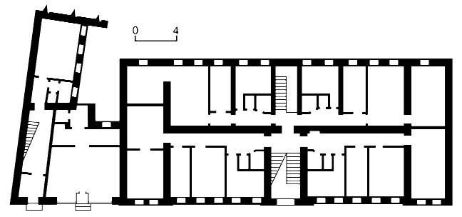 [2003 р.] План першого поверхуРозмір зображення: 648:304 піксел Джерело: Звід пам’яток історії і культури України. – К.: 2003 р., т. 2 (Київ), № 458-05a. |