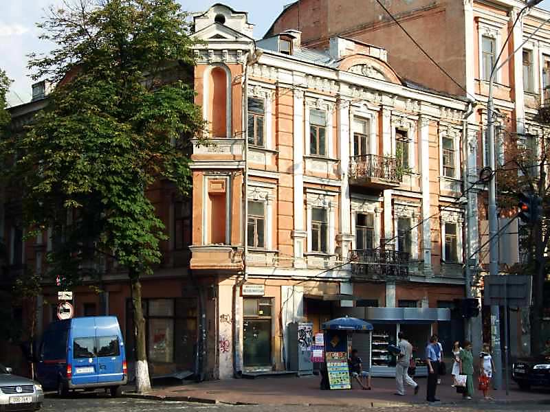 2007 р. Загальний вигляд Розмір зображення: 800:600 піксел 19 липня 2007 р. Фото М.І.Жарких. Вкладені елементи Центральна частина фасаду по вул.Володимирській