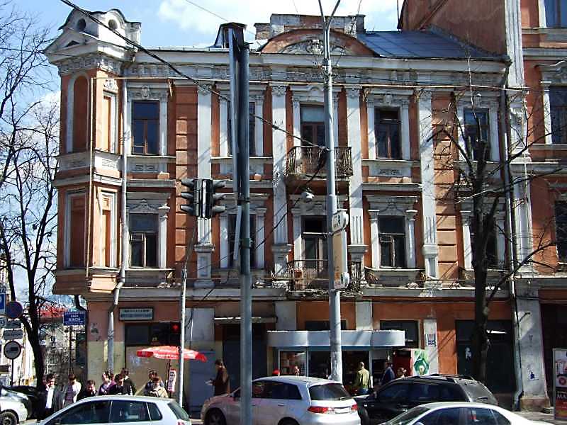 2009 р. Фасад по вул. Володимирській Розмір зображення: 800:600 піксел 8 квітня 2009 р. Фото М.І.Жарких. Вкладені елементи Фрагмент 3-го поверху з фронтоном