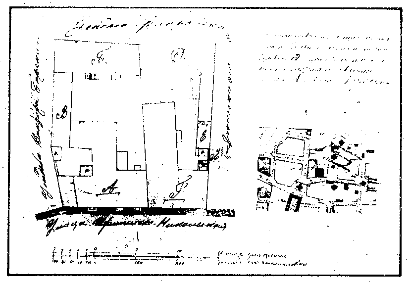 План домоволодіння купця Горовиця (колишні шевського цеху і родини Рибальських). 1898 р. З…