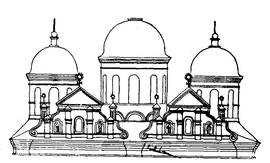 Фронтони і верхиРозмір зображення: 918:556 піксел Джерело: Цапенко М. Архитектура левобережной Украины XVII – XVIII веков. – М.: 1967 г., с. 203. |
