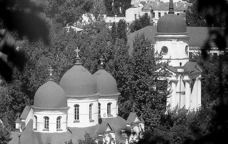1983 р. Собор і дзвіниця. Вигляд з південного заходуРозмір зображення: 800:505 піксел 1983 р. Вересень. Фото М.І.Жарких. Негатека, № 260-13. |
