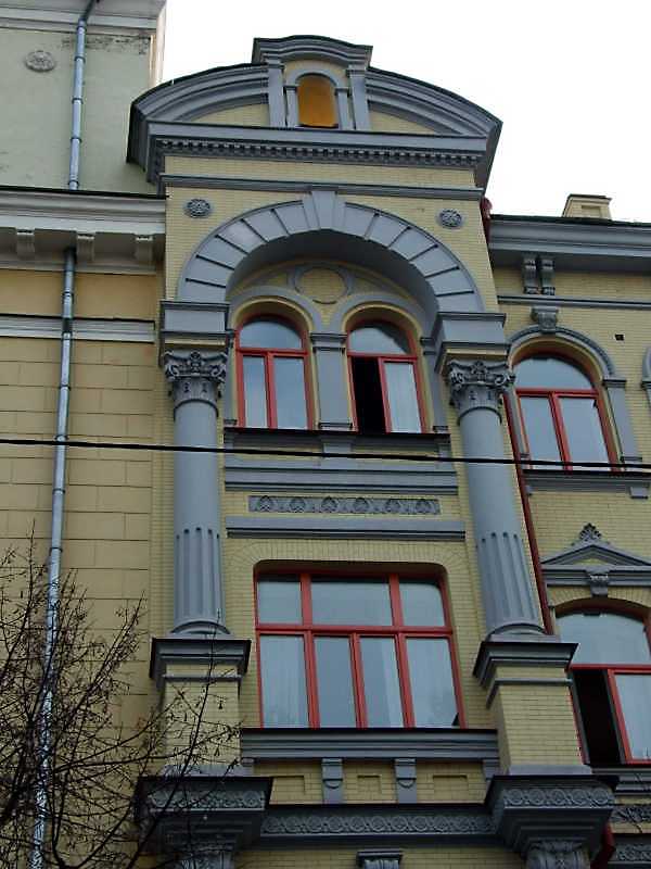 Лівий ризаліт, 3-4-й поверхи Розмір зображення: 600:800 піксел 6 квітня 2009 р. Фото М.І.Жарких. Вище | Наступна сторінка