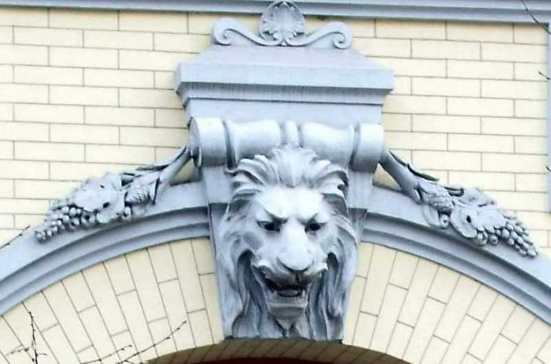 Замковий камінь арки з маскою лева Розмір зображення: 800:529 піксел 6 квітня 2009 р. Фото М.І.Жарких. Вище | Наступна сторінка