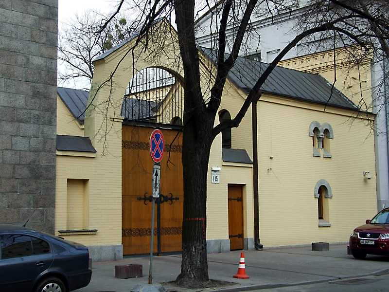 2009 р. Брама і флігель по вул. П.Орлика Розмір зображення: 800:600 піксел 6 квітня 2009 р. Фото М.І.Жарких. Вкладені елементи Вікна 2-го поверху
