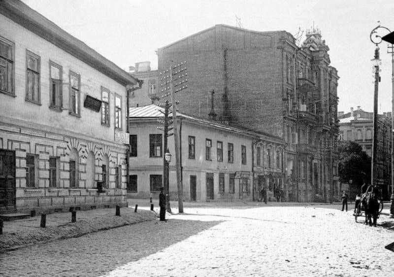Ліворуч – фрагмент давнього будинку № 21 (нині на його місці – новий будинок), далі перетин з вул. Стрілецькою і будинок № 23 (нині знесений, там порожнє місце). Далі височіє будинок № 25 (збережений).