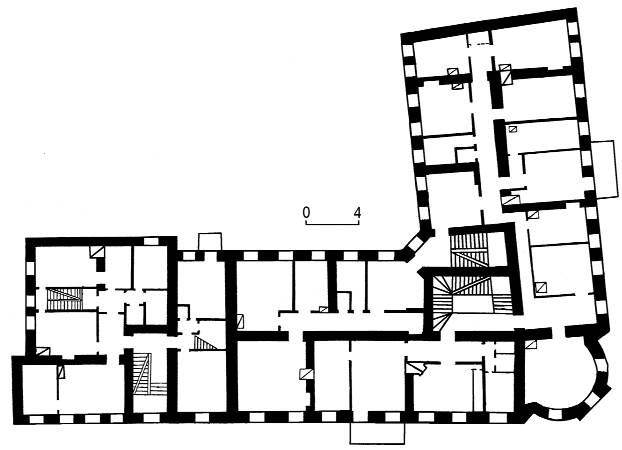 [2003 р.] План другого поверху (№ 29)Розмір зображення: 622:450 піксел Джерело: Звід пам’яток історії і культури України. – К.: 2003 р., т. 2 (Київ), № 463-20b. |