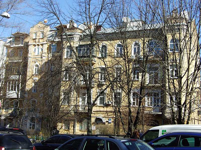 2020 р. Головний фасад Розмір зображення: 800:600 піксел Фото М. І. Жарких, 16 березня 2020 р. Вкладені елементи Фронтон і вікно 4-го поверху