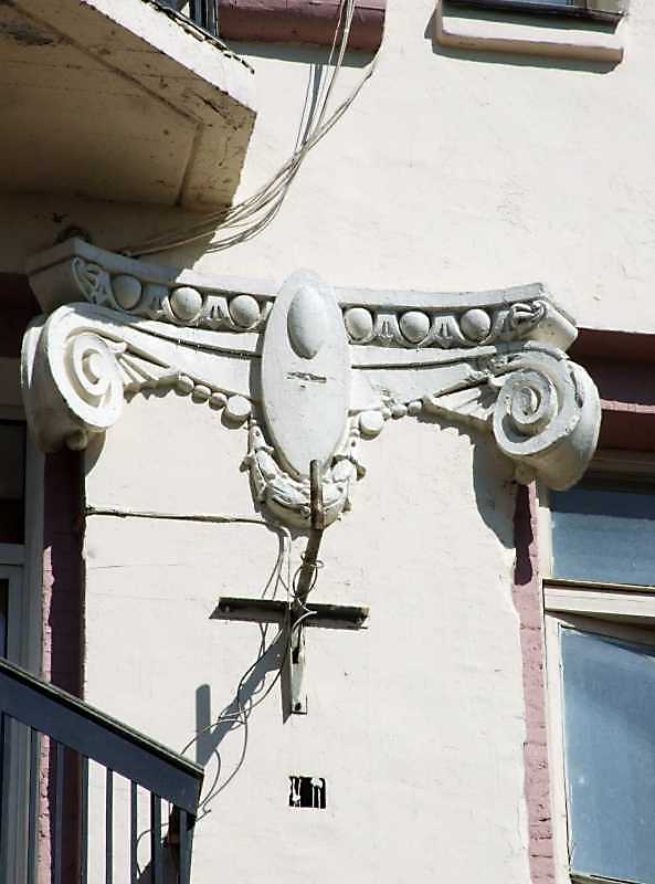 Капітель на рівні 4-го поверху Розмір зображення: 593:800 піксел 8 квітня 2009 р. Фото М.І.Жарких. Попередня сторінка | Вище | Наступна сторінка