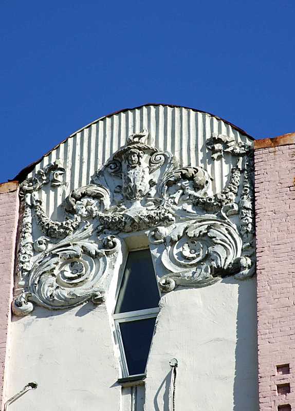 Сецесійний рельєф на фронтоні Розмір зображення: 574:800 піксел Фото М. І. Жарких, 16 березня 2020 р. Вище | Наступна сторінка