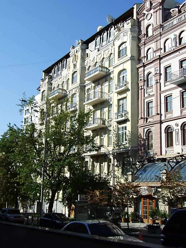 Житловий будинок (№ 2) Розмір зображення: 600:800 піксел Вкладені елементи 1999 р. Звід пам’яток Києва (+) 2007 р. Загальний вигляд 2007 р. Загальний вигляд 2007 р. Центральна частина 6-7-го поверхів головного фасаду 2007 р. Вікно 2-го поверху і кронштейни бічного еркера