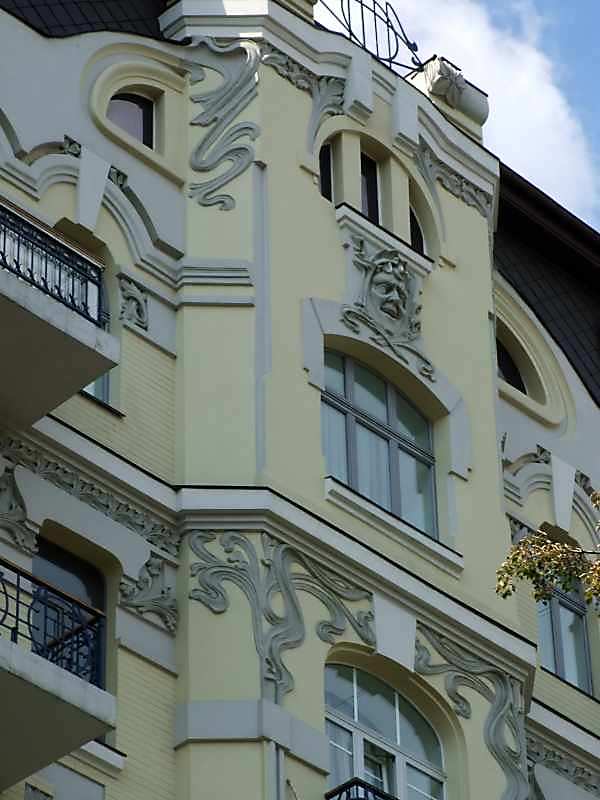 2007 р. Центральна частина 6-7-го поверхів головного фасадуРозмір зображення: 600:800 піксел 26 серпня 2007 р. Фото М.І.Жарких. |