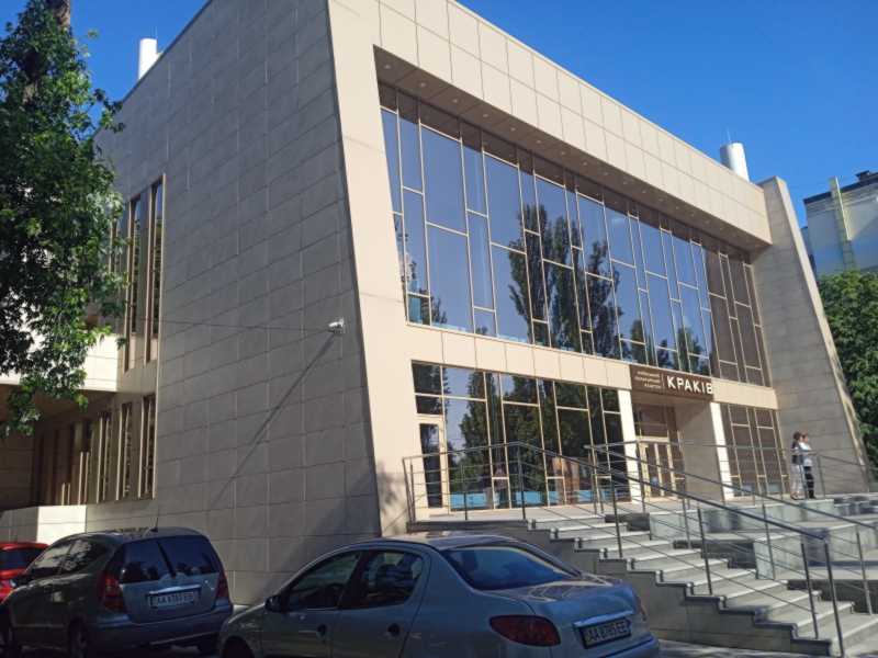 2023 р. Головний фасад у ракурсі Розмір зображення: 800:600 піксел Фото М. І. Жарких 4 червня 2023 р. Вище | Наступна сторінка