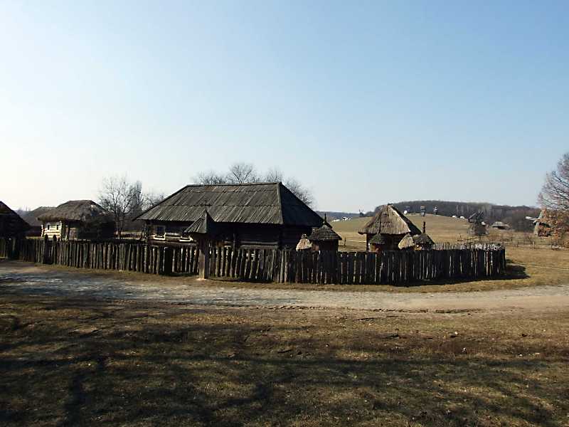 2011 р. Загальний вигляд з боку вулиці (хата садиби 5, хата садиби 6, хрест, вулики, стебка)Розмір зображення: 800:600 піксел 30 березня 2011 р. Фото М.І.Жарких. |