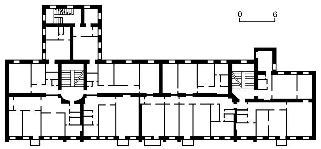 [2003 р.] План другого поверху (№ 25а)Розмір зображення: 645:301 піксел Джерело: Звід пам’яток історії і культури України. – К.: 2003 р., т. 2 (Київ), № 468-12a. |
