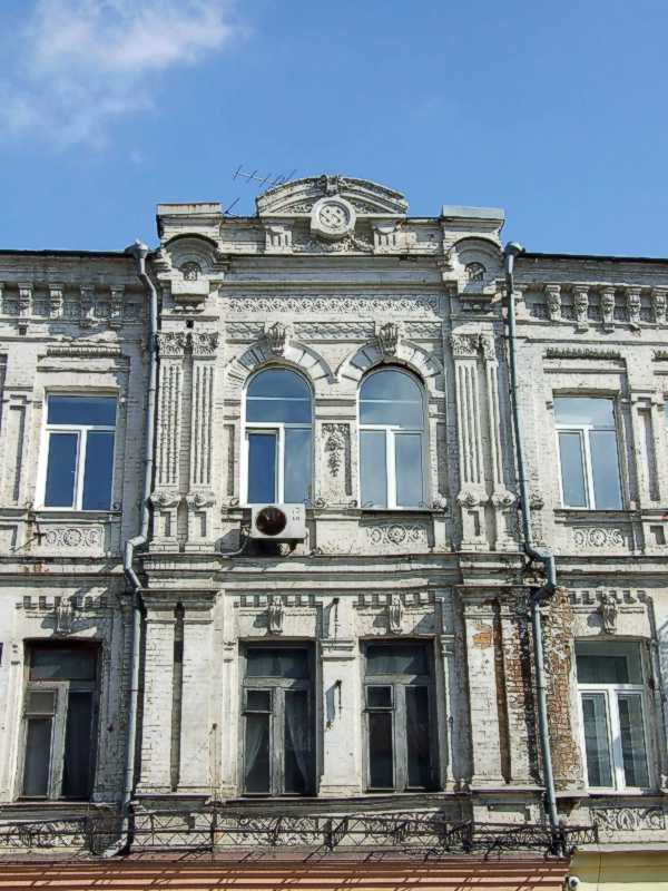 Фрагмент 2-3-го поверхів головного фасадуРозмір зображення: 600:800 піксел Фото М. І. Жарких, 21 березня 2021 р. |
