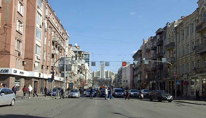 2020 р. Перспектива від вул. Антоновича в бік вул. Великої ВасильківськоїРозмір зображення: 800:460 піксел Фото М. І. Жарких, 12 березня 2020 р. |