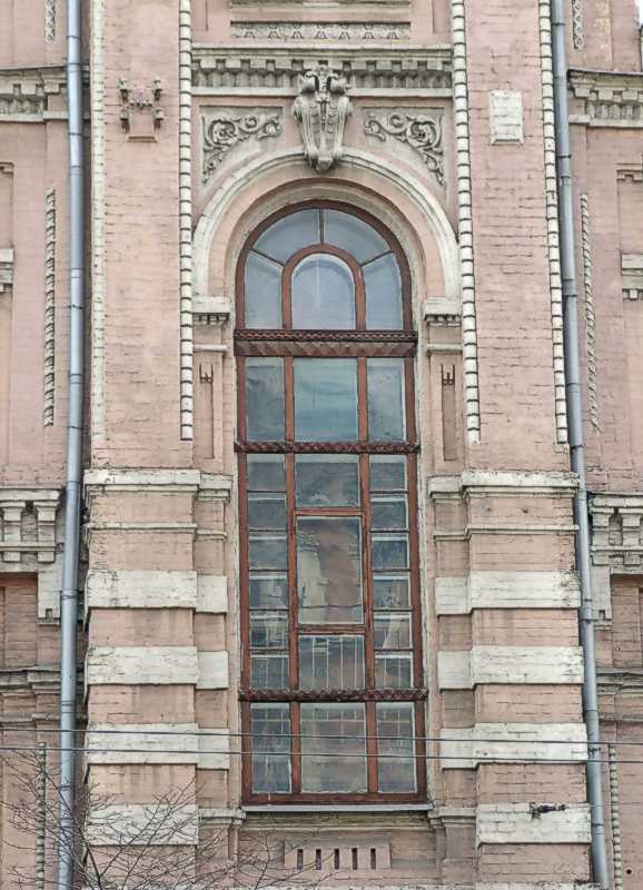 Вікно 3-4-го поверхів сходової клітки Розмір зображення: 578:800 піксел Фото М. І. Жарких, 29 березня 2021 р. Попередня сторінка | Вище | Наступна сторінка