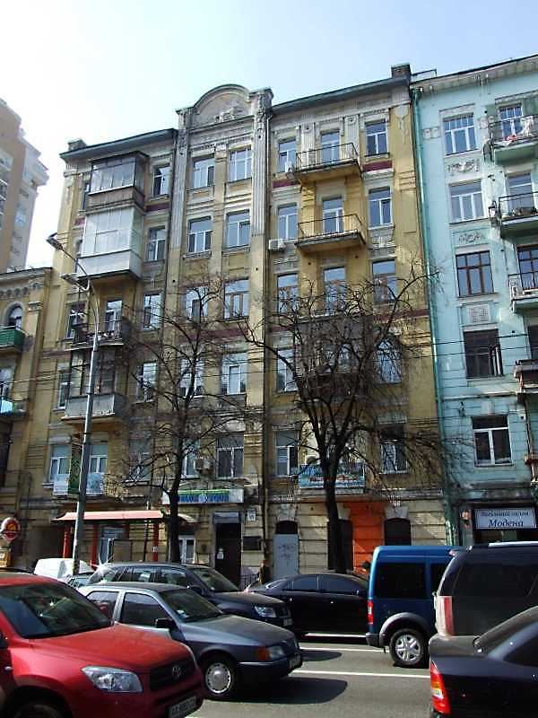 2009 р. Загальний вигляд Розмір зображення: 600:800 піксел 7 квітня 2009 р. Фото М.І.Жарких. Вкладені елементи Центральна частина головного фасаду (+) Меморіальна дошка підпільному Московському райкому КП(б)У