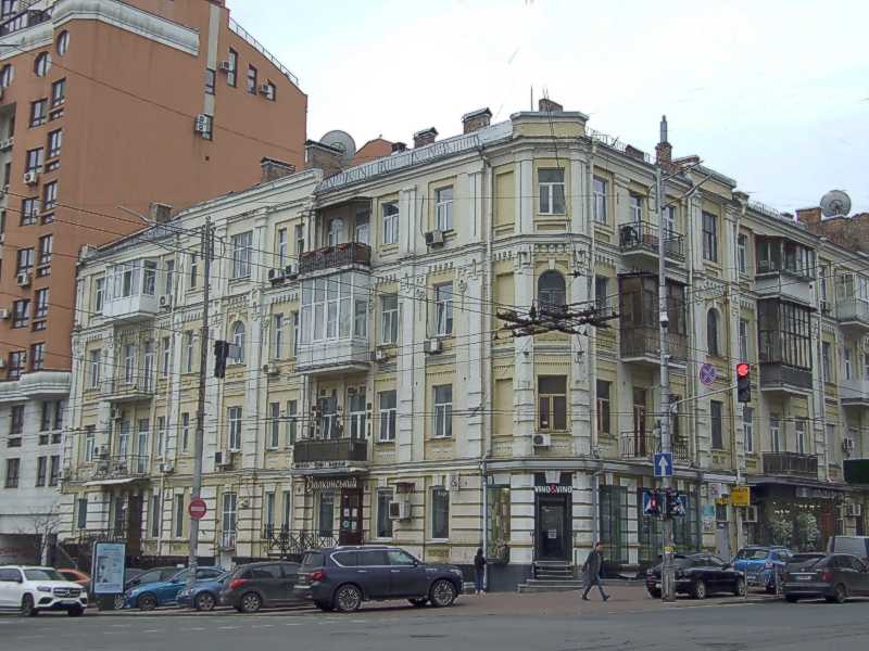 Житловий будинок (№ 13 / Шота Руставелі, 42)Розмір зображення: 800:600 піксел Ліворуч – вул. Шота Руставелі, праворуч – вул. Саксаганського. Фото М. І. Жарких, 29 березня 2021 р. |
