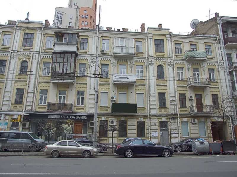 2021 р. Права частина фасаду по вул. СаксаганськогоРозмір зображення: 800:600 піксел Фото М. І. Жарких, 29 березня 2021 р. |