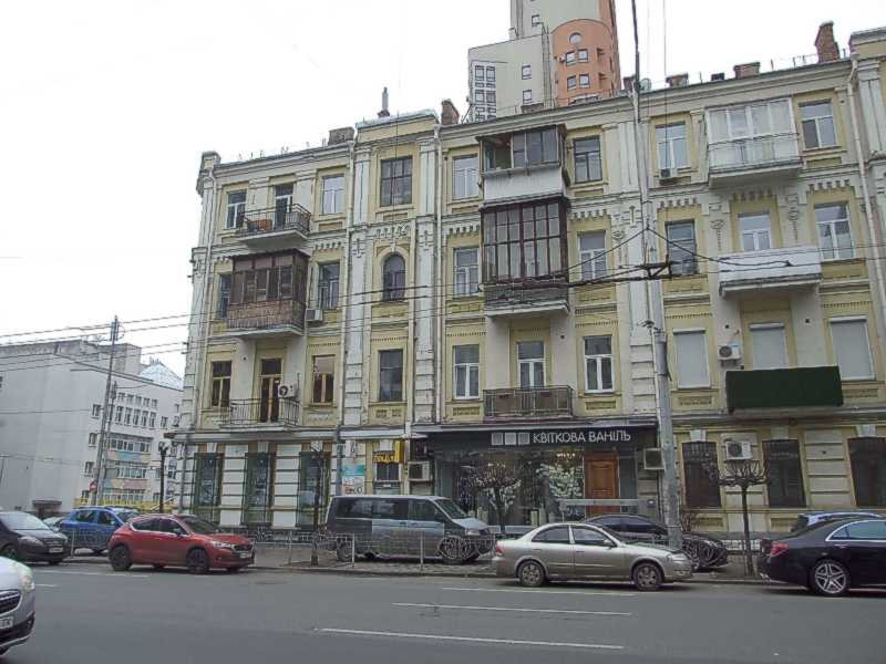 2021 р. Ліва частина фасаду по вул. СаксаганськогоРозмір зображення: 800:600 піксел Фото М. І. Жарких, 29 березня 2021 р. |