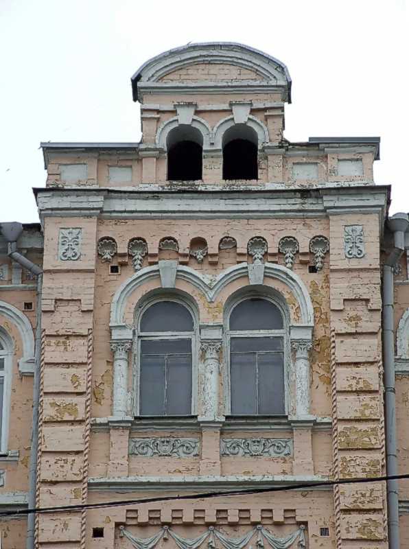 Вікна 4-го поверху і фронтон (2) Розмір зображення: 596:800 піксел Фото М. І. Жарких, 29 березня 2021 р. Вище | Наступна сторінка