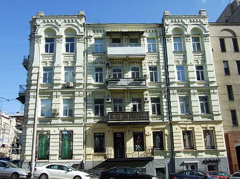 2020 р. Фасад по вул. Антоновича Розмір зображення: 800:596 піксел Фото М. І. Жарких, 12 березня 2020 р. Вкладені елементи Вікна 4-го поверху
