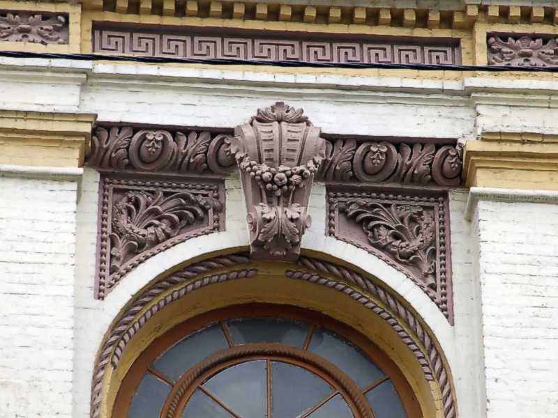 Тимпан вікна 4-го поверху Розмір зображення: 800:600 піксел Фото М. І. Жарких, 29 березня 2021 р. Попередня сторінка | Вище | Наступна сторінка
