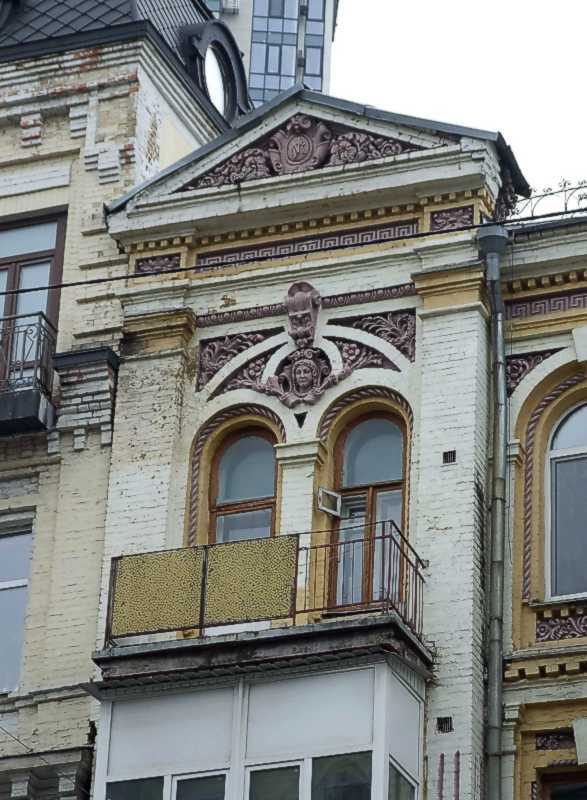 Вікна 4-го поверху і фронтон Розмір зображення: 587:800 піксел Фото М. І. Жарких, 29 березня 2021 р. Вище | Наступна сторінка