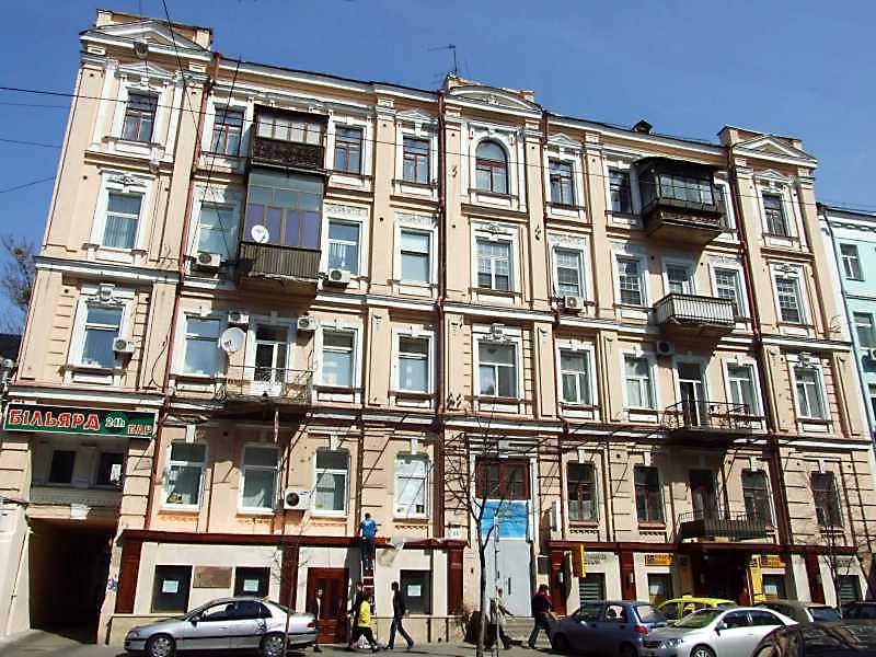 Житловий будинок (№ 44)Розмір зображення: 800:600 піксел В 1941 – 1943 рр. в цьому будинку знаходився Радянський підпільний райком комсомолу; меморіальна дошка 1975 р. [Памятники истории и культуры Украинской ССР. – К.: 1987 г., с. 37]. |
