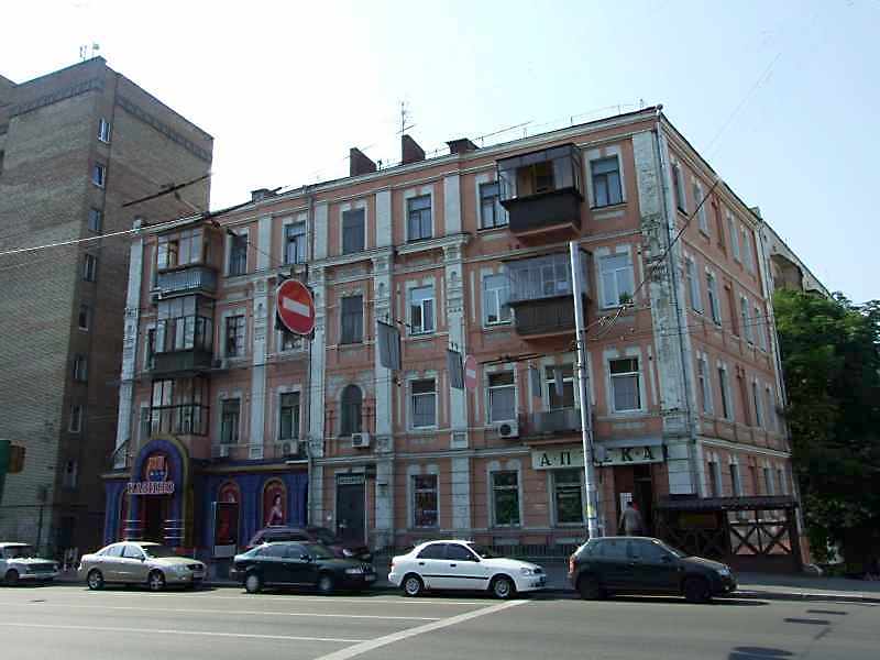Житловий будинок (№ 51 / Володимирська, 87)Розмір зображення: 800:600 піксел Ліворуч – вул.Саксаганського, праворуч – вул.Володимирська. 2008 р. 12 червня. Фото М.І.Жарких. |