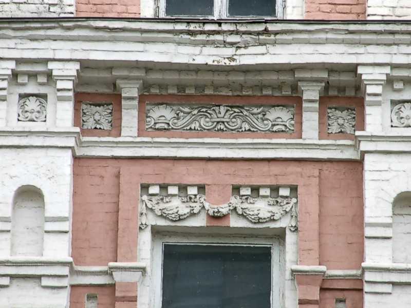 Фриз над вікном 3-го поверху Розмір зображення: 800:600 піксел Фото М. І. Жарких, 29 березня 2021 р. Вище | Наступна сторінка