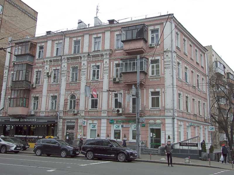 2021 р. Загальний вигляд з північного заходуРозмір зображення: 800:600 піксел Ліворуч – вул.Саксаганського, праворуч – вул.Володимирська. Фото М. І. Жарких, 29 березня 2021 р. |